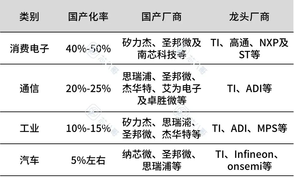 如今在通用型、技术壁垒较低的模拟芯片领域,国内厂商的国产替代已经基本实现。